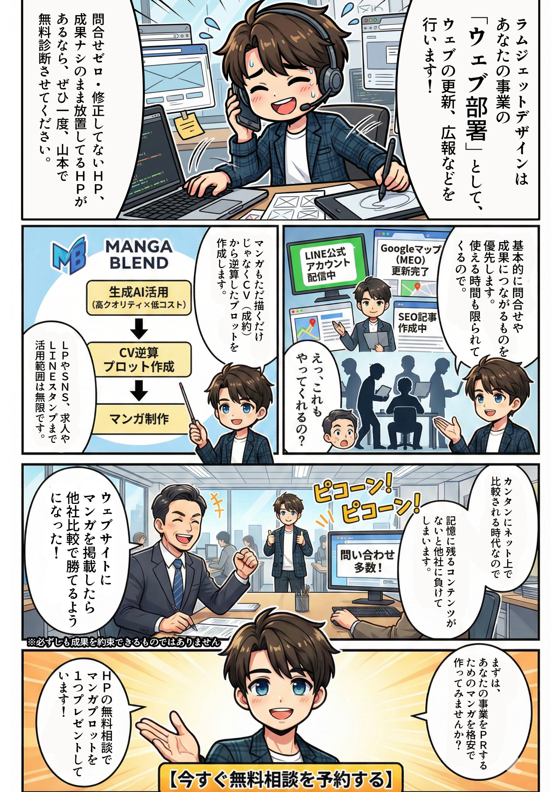 【AIマンガ制作】ホームページ相談ページ作成:アガールアップ合同会社