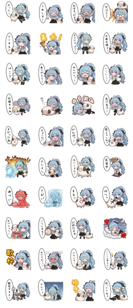 ぱるむで配信されているライバー・安眠むぅ様のオリジナルLINEスタンプの制作をさせていただきました。🐏いつも眠たげな羊モチーフのお姉さんです。40個。